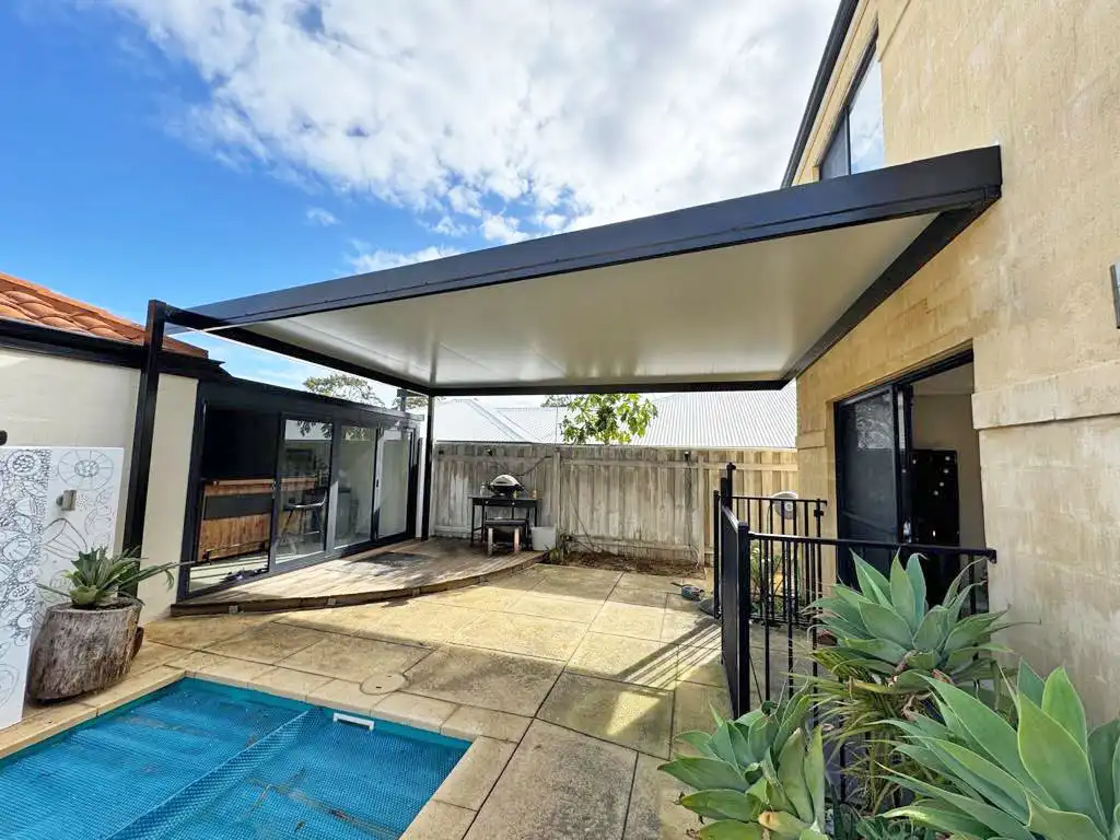 The perfect answer to a modern day, flat patio. if you looking for the perfect outdoor entertainment area with a lots of style, normal roof or insulated, contact My Patio Perth Builder