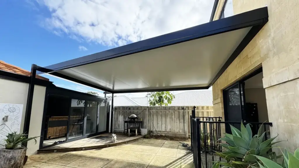 The perfect answer to a modern day, flat patio. if you looking for the perfect outdoor entertainment area with a lots of style, normal roof or insulated, contact My Patio Perth Builder
