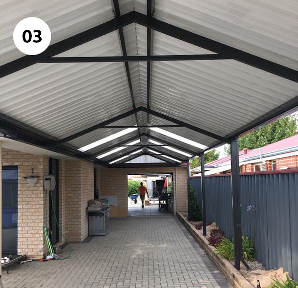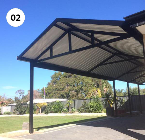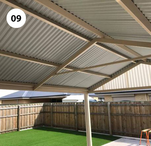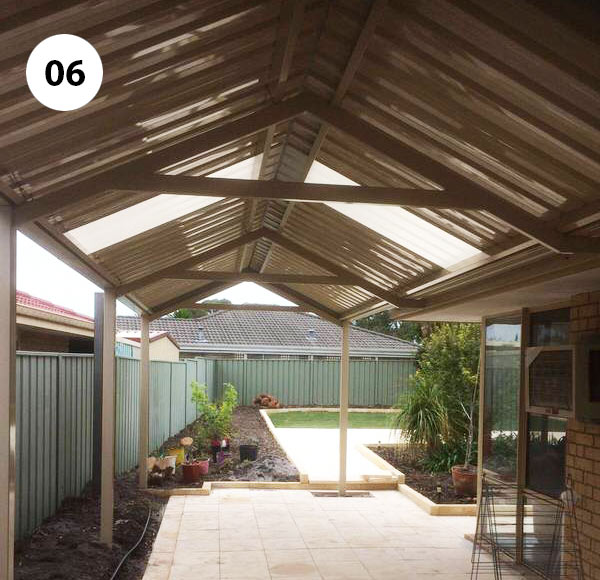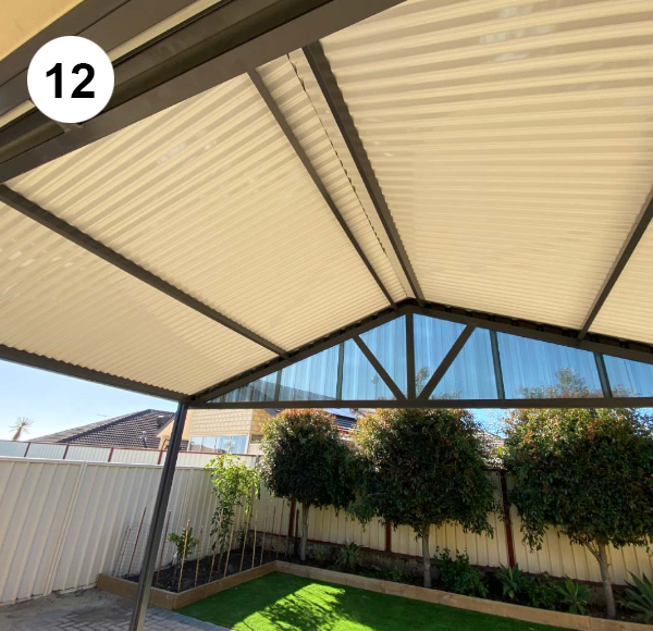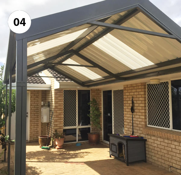There’s a wide range of roofing to choose from. For maximum shade Colorbond® or Solarspan® is available in a wide range of profiles and colours. To avoid blocking light and making your rooms dark, we recommend polycarbonate patio roofing. Polycarbonate roofing is available in a profiled sheet or flat, twin, or multi walled sheets. Both steel and polycarbonate roofing are available in a wide range of colours and profiles to compliment and add value to your patio and home.